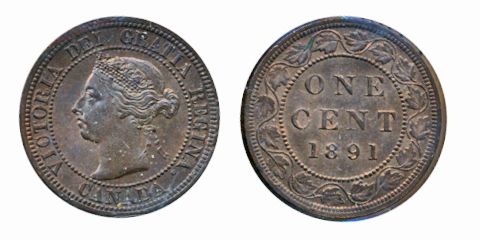 1891. Large Date, Large Leaves. Obverse port. #3. ICCS Mint State-62. Trace Red. Hints of luster.