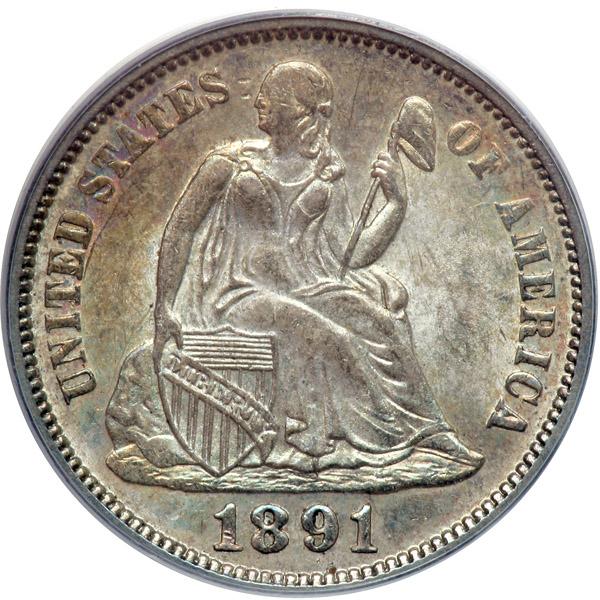 1891. PCGS graded MS-63+. Lightly toned on both sides. Pop 1 in this plus grade (PCGS # 4706) .