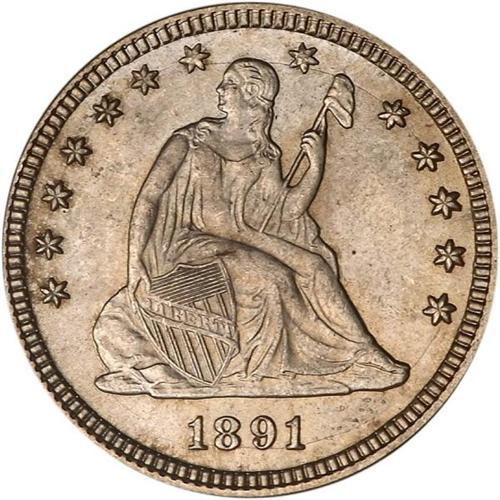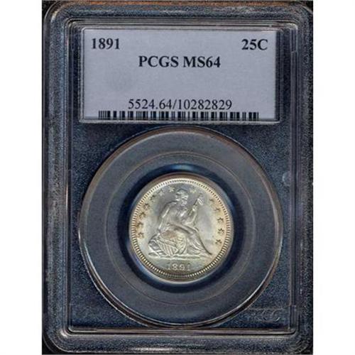 <b>1891 Liberty Seated Quarter Dollar. PCGS graded MS64.</b> Almost completely white and frosty. This choice example has a few light contact marks but is very presentable in this grade <b>(PCGS # 5524)</b> <i>