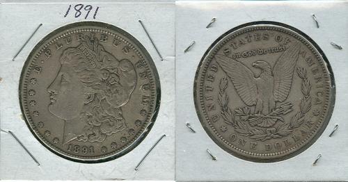 1891 MORGAN SILVER DOLLAR.