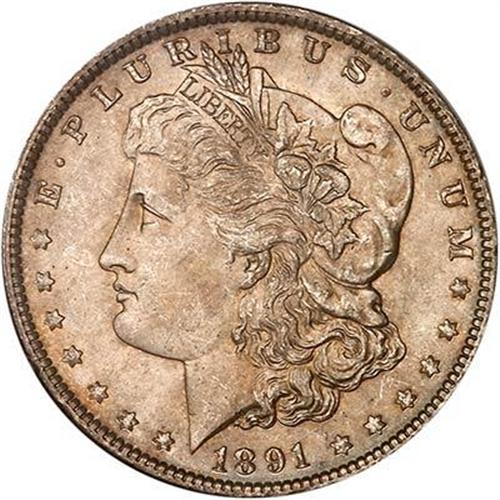 This sparkling Gem boasts swirling cartwheel effects and uncommonly sharp striking detail for the 1891 Philadelphia Mint's product. Keen-edged devices throughout, including the main hair elements on Liberty with a blush of hazy gold toning on both sides. (#7204)