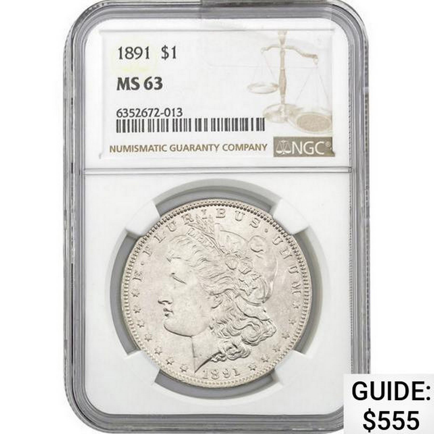 1891 Morgan Silver Dollar NGC MS63