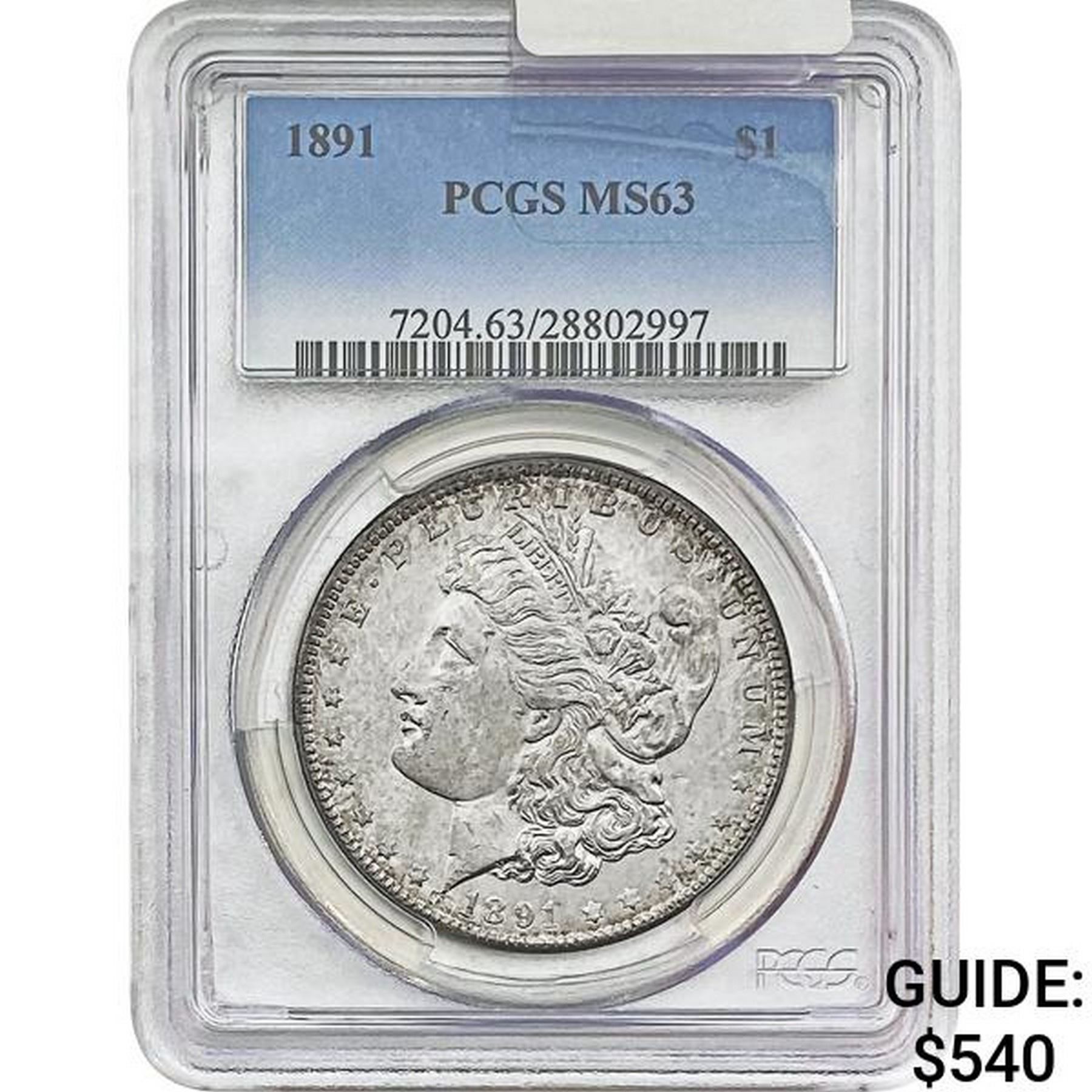 1891 Morgan Silver Dollar PCGS MS63