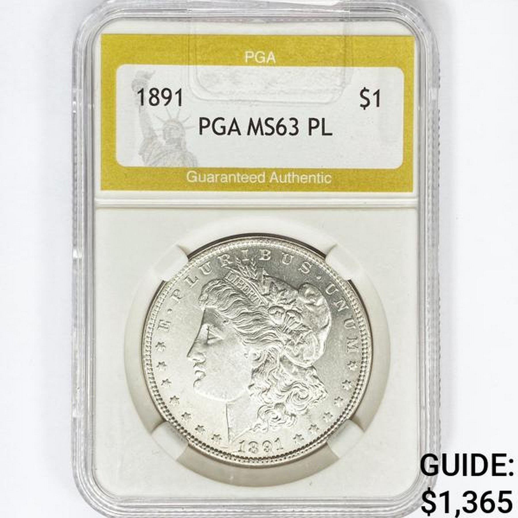 1891 Morgan Silver Dollar PGA MS63 PL
