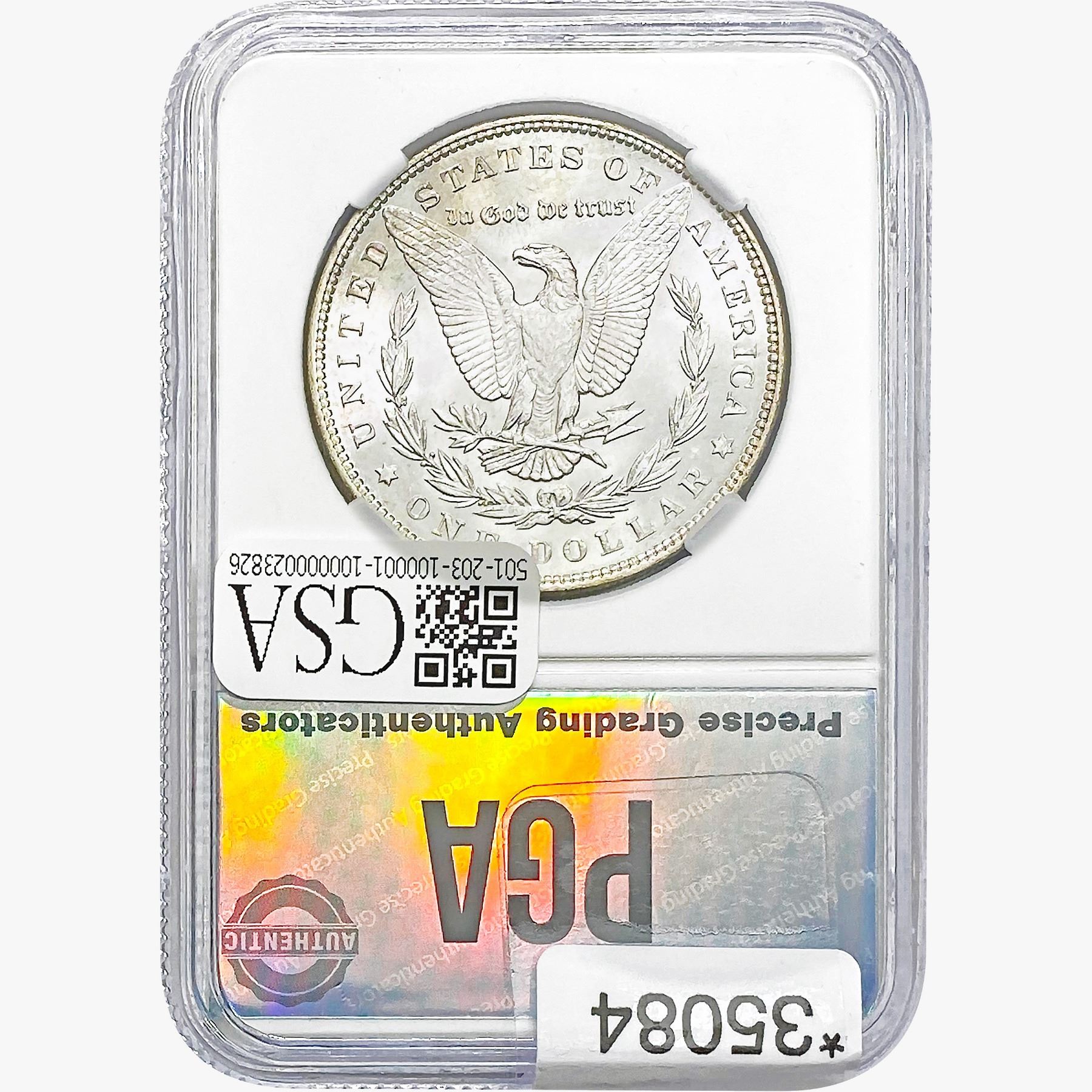 COINS AND CURRENCY LISTED IN GSA’S CATALOG AS GRADED AND ENCAPSULATED BY PCGS, NGC, ANACS, ICG, PCGS CURRENCY, PMG, PCGS BANKNOTE GRADING, CMC OR ANY OTHER THIRD-PARTY GRADING SERVICE ARE LIKEWISE SOLD “AS-IS” EXCEPT AS EXPRESSLY SET FORTH HEREIN. ALL THIRD-PARTY GRADING SERVICE GUARANTEES, INCLUDING AUTHENTICITY, ARE THE SOLE RESPONSIBILITY OF THE THIRD-PARTY GRADING SERVICE AND NOT WARRANTIES OR GUARANTEES OF GSA. BIDDERS SHOULD CONTACT THESE THIRD-PARTY GRADING SERVICES DIRECTLY WITH RESPECT TO ANY CLAIMS OR QUESTIONS THEY MAY HAVE CONCERNING THEIR GUARANTEES AND WARRANTIES. BIDDERS ACKNOWLEDGE AND AGREE THAT AUCTIONEER IS NOT BOUND BY OR LIABLE FOR ANY OPINION OR CERTIFICATION BY ANY THIRD-PARTY GRADING SERVICE. REMOVAL OF A PRODUCT FROM ITS PROTECTIVE CASING OR HOLDER OR ALTERATION OF ANY COIN HOLDER WAIVES ALL RIGHTS CONCERNING THE PRODUCT CONTAINED THEREIN.