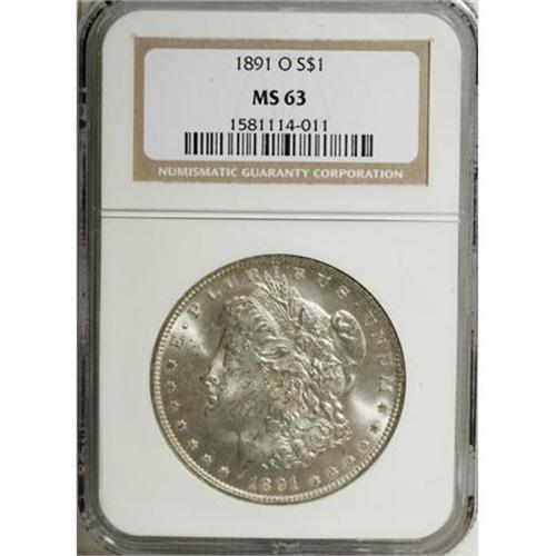 <B>1891-O $1 MS63 NGC.</B></I> NGC Census: (1183/855). PCGS Population (1666/1148). Mintage: 7,954,529. Numismedia Wsl. Price for NGC/PCGS coin in MS63: $300. (#7208)<BR><BR><B>Coin Engraver:</B> George T. Morgan<BR><BR><b>Shipping:</b> Coins & Currency (<a target="_blank" href="http://www.heritageauctions.com/common/shipping.php">view shipping information</a>)