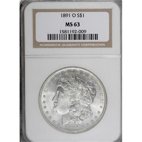 <B>1891-O $1 MS63 NGC.</B></I> NGC Census: (1203/861). PCGS Population (1670/1169). Mintage: 7,954,529. Numismedia Wsl. Price for NGC/PCGS coin in MS63: $300. (#7208)<BR><BR><B>Coin Engraver:</B> George T. Morgan<BR><BR><b>Shipping:</b> Coins & Currency (<a target="_blank" href="http://www.heritageauctions.com/common/shipping.php">view shipping information</a>)