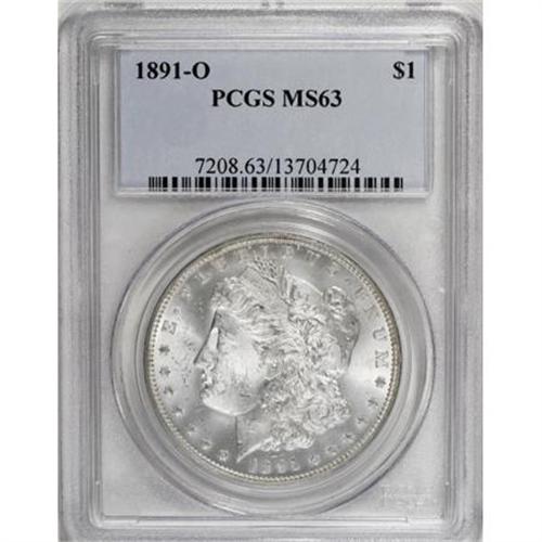 <B>1891-O $1 MS63 PCGS.</B></I> PCGS Population (1667/1151). NGC Census: (1183/855). Mintage: 7,954,529. Numismedia Wsl. Price for NGC/PCGS coin in MS63: $300. (#7208)<BR><BR><B>Coin Engraver:</B> George T. Morgan<BR><BR><b>Shipping:</b> Coins & Currency (<a target="_blank" href="http://www.heritageauctions.com/common/shipping.php">view shipping information</a>)