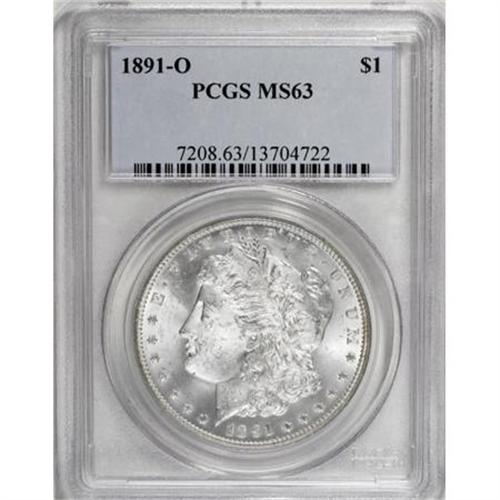 <B>1891-O $1 MS63 PCGS.</B></I> PCGS Population (1667/1151). NGC Census: (1183/855). Mintage: 7,954,529. Numismedia Wsl. Price for NGC/PCGS coin in MS63: $300. (#7208)<BR><BR><B>Coin Engraver:</B> George T. Morgan<BR><BR><b>Shipping:</b> Coins & Currency (<a target="_blank" href="http://www.heritageauctions.com/common/shipping.php">view shipping information</a>)