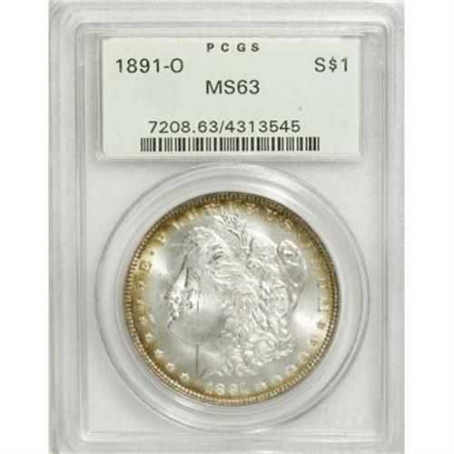 <B>1891-O $1 MS63 PCGS.</B></I> PCGS Population (1677/1172). NGC Census: (1205/861). Mintage: 7,954,529. Numismedia Wsl. Price for NGC/PCGS coin in MS63: $300. (#7208)<BR><BR><B>Coin Engraver:</B> George T. Morgan<BR><BR><b>Shipping:</b> Coins & Currency (<a target="_blank" href="http://www.heritageauctions.com/common/shipping.php">view shipping information</a>)