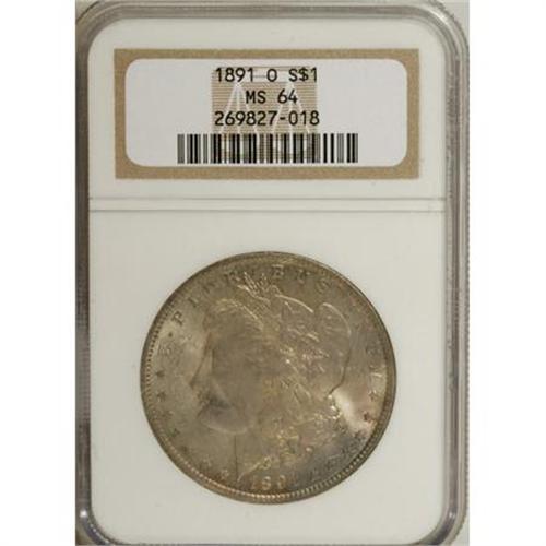<B>1891-O $1 MS64 NGC.</B></I> Well-defined for this O-mint issue with soft, swirling luster beneath vibrant patina. The carefully preserved surfaces boast a lovely melange of orange, amethyst, peach, and rose.<BR><BR><B>Coin Engraver:</B> George T. Morgan<BR><BR><b>Shipping:</b> Coins & Currency (<a target="_blank" href="http://www.heritageauctions.com/common/shipping.php">view shipping information</a>)