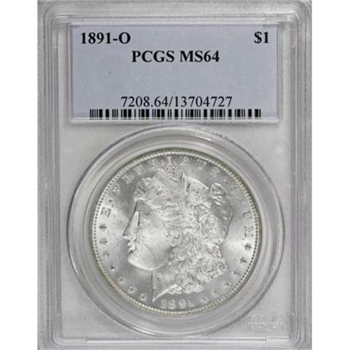 <B>1891-O $1 MS64 PCGS.</B></I> This impressively preserved and thoroughly lustrous Choice New Orleans dollar might merit a higher grade if the hair above the ear had more than typical definition.<BR><BR><B>Coin Engraver:</B> George T. Morgan<BR><BR><b>Shipping:</b> Coins & Currency (<a target="_blank" href="http://www.heritageauctions.com/common/shipping.php">view shipping information</a>)