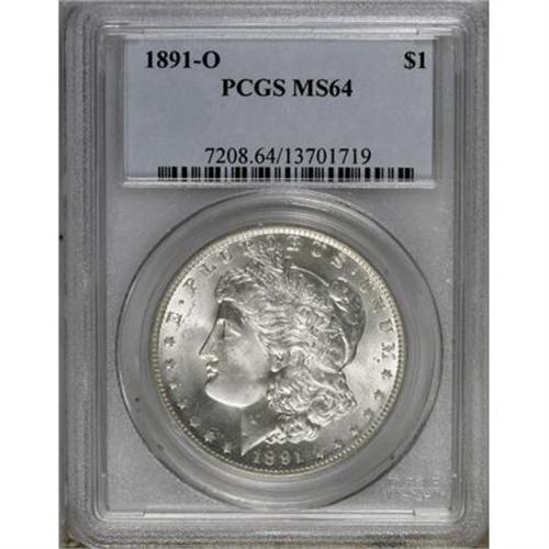 <B>1891-O $1 MS64 PCGS.</B></I> Both sides offer excellent luster and minimal patina. While this Choice example shows typical softness at the centers, the overall eye appeal is excellent. PCGS has graded 86 finer pieces (1/08).<BR><BR><B>Coin Engraver:</B> George T. Morgan<BR><BR><b>Shipping:</b> Coins & Currency (<a target="_blank" href="http://www.heritageauctions.com/common/shipping.php">view shipping information</a>)