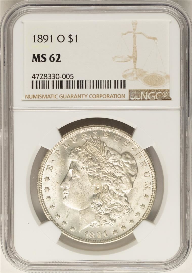 One 1891-O $1 Morgan Silver Dollar Coin NGC MS62. NGC Certified.