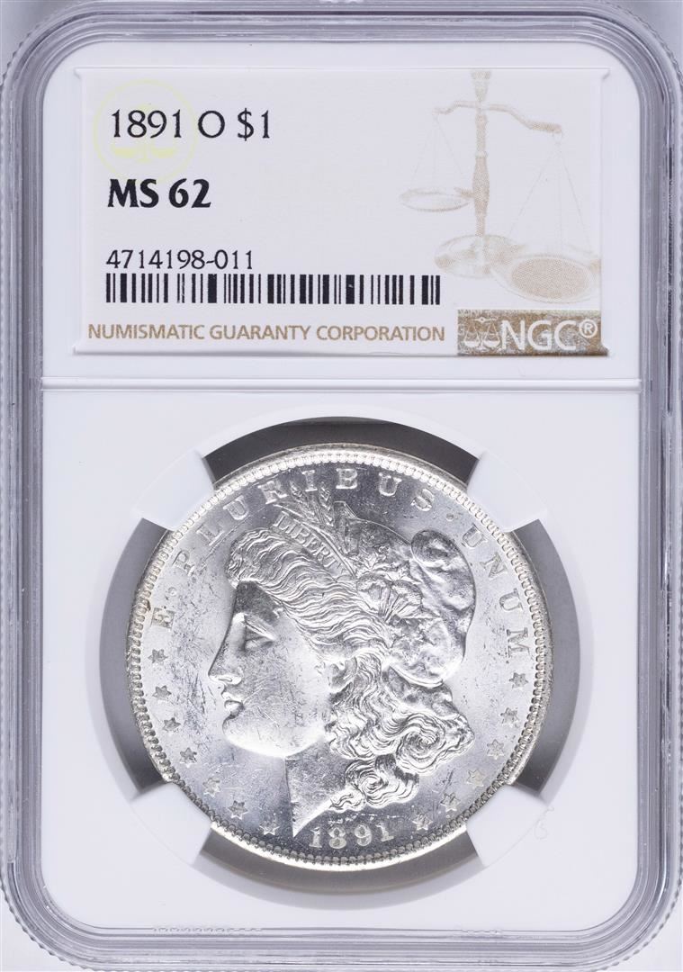 One 1891-O $1 Morgan Silver Dollar Coin NGC MS62. NGC Certified.