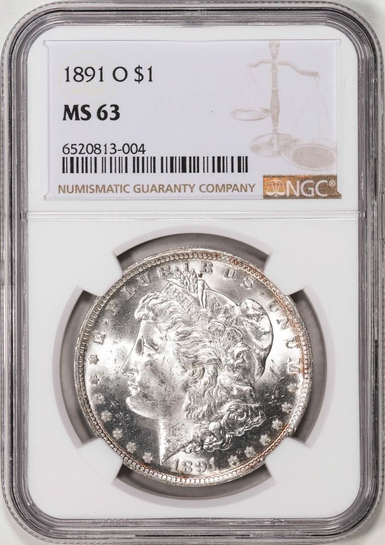 One 1891-O $1 Morgan Silver Dollar Coin NGC MS63. NGC Certified.