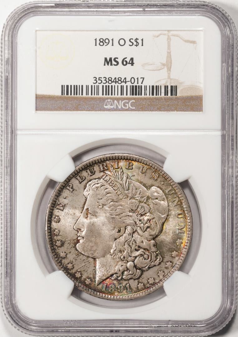 One 1891-O $1 Morgan Silver Dollar Coin NGC MS64 Nice Color. NGC Certified.