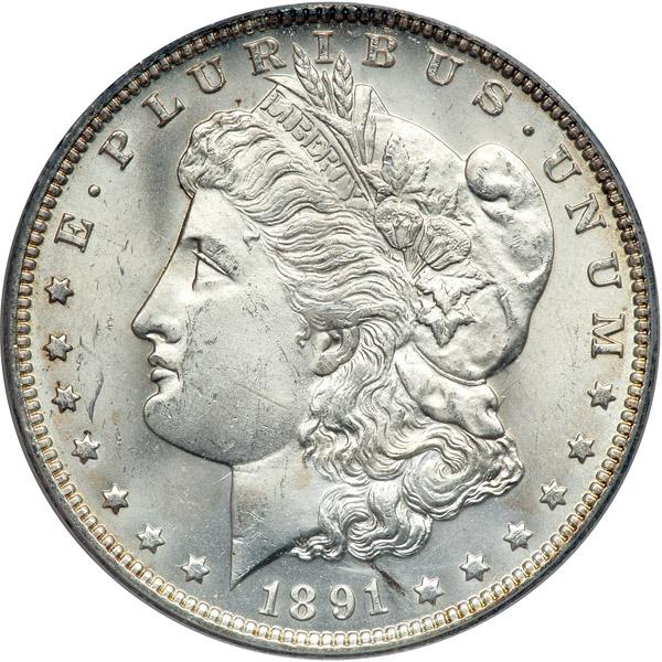 1891-O Morgan Dollar. PCGS graded Genuine. Surfaces tooled. Our grade is sharpness of MS64. It looks like someone tried to remove a black obverse streak near the date (PCGS # 7208) .