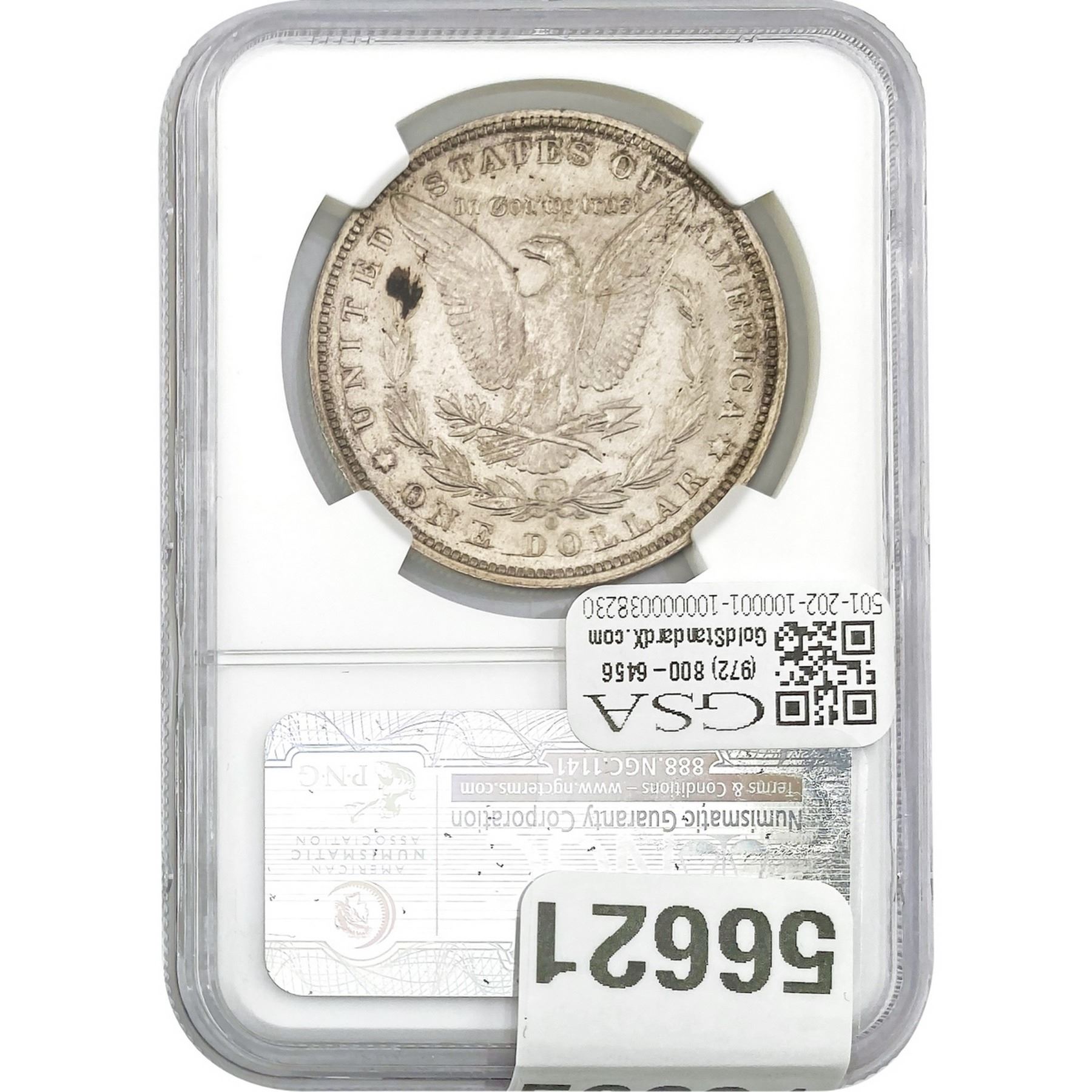 e. Coins sold referencing a third-party grading service are sold “AS IS” without any express or implied warranty, except for a guarantee by GSA that they are genuine. Removal or alteration of the holder, voids all of Bidder’s claims concerning that Product. Certain warranties may be available from the grading services and Bidders are referred to them for further details: Numismatic Guaranty Corporation (NGC), PO Box 4776, Sarasota, FL 34230, www.ngccoin.com/services/writtenguarantee.asp; Professional Coin Grading Services (PCGS), PO Box 9458, Newport Beach, CA 92658, www.pcgs.com/guarantee.html; ANACS, 6555 S. Kenton St., Ste. 303, Englewood, CO 80111; and Independent Coin Grading Co. (ICG), 7901 East Bellview, Ave., Suite 50, Englewood, CO 80111.
