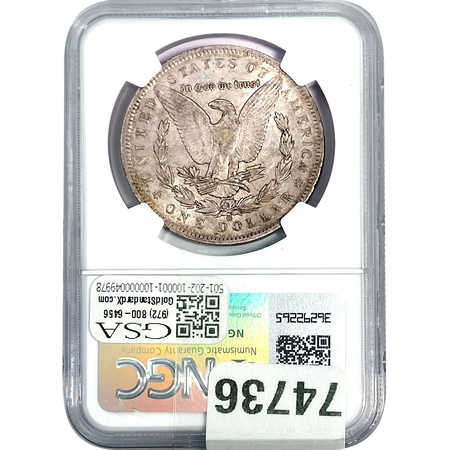COINS AND CURRENCY LISTED IN GSA’S CATALOG AS GRADED AND ENCAPSULATED BY PCGS, NGC, ANACS, ICG, PCGS CURRENCY, PMG, PCGS BANKNOTE GRADING, CMC OR ANY OTHER THIRD-PARTY GRADING SERVICE ARE LIKEWISE SOLD “AS-IS” EXCEPT AS EXPRESSLY SET FORTH HEREIN. ALL THIRD-PARTY GRADING SERVICE GUARANTEES, INCLUDING AUTHENTICITY, ARE THE SOLE RESPONSIBILITY OF THE THIRD-PARTY GRADING SERVICE AND NOT WARRANTIES OR GUARANTEES OF GSA. BIDDERS SHOULD CONTACT THESE THIRD-PARTY GRADING SERVICES DIRECTLY WITH RESPECT TO ANY CLAIMS OR QUESTIONS THEY MAY HAVE CONCERNING THEIR GUARANTEES AND WARRANTIES. BIDDERS ACKNOWLEDGE AND AGREE THAT AUCTIONEER IS NOT BOUND BY OR LIABLE FOR ANY OPINION OR CERTIFICATION BY ANY THIRD-PARTY GRADING SERVICE. REMOVAL OF A PRODUCT FROM ITS PROTECTIVE CASING OR HOLDER OR ALTERATION OF ANY COIN HOLDER WAIVES ALL RIGHTS CONCERNING THE PRODUCT CONTAINED THEREIN.