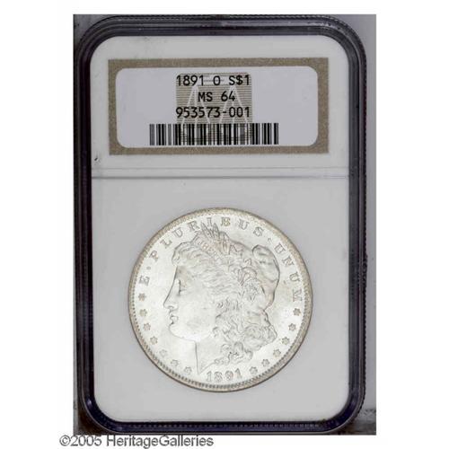 1891-O S$1 MS64 NGC. Highly lustrous with flashy, most 1891-O[S$1] MS64 NGC.