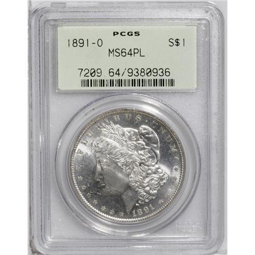 <B>1891-O<img border='0' src='http://www.heritagecoins.com/images/star.gif' width=10 height=10>$1> MS64 Prooflike PCGS.</B></I> Moderately mirrored and nicely struck with minimal marks and plenty of eye appeal. Only 41 examples have been given the Prooflike designation by PCGS, most of which fall short of this coin. Population: 10 in 64 Prooflike, 0 finer (7/06).