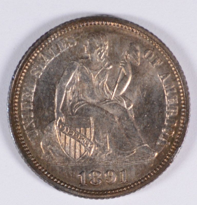 1891-O SEATED DIME, MS-64+ SUPER LUSTRE! NICE ORIGINAL COIN!