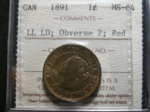 1891 Obv.2 LDLL 1¢ ICCS MS64 Red, Excellent strike and great fields. Rare this nice!