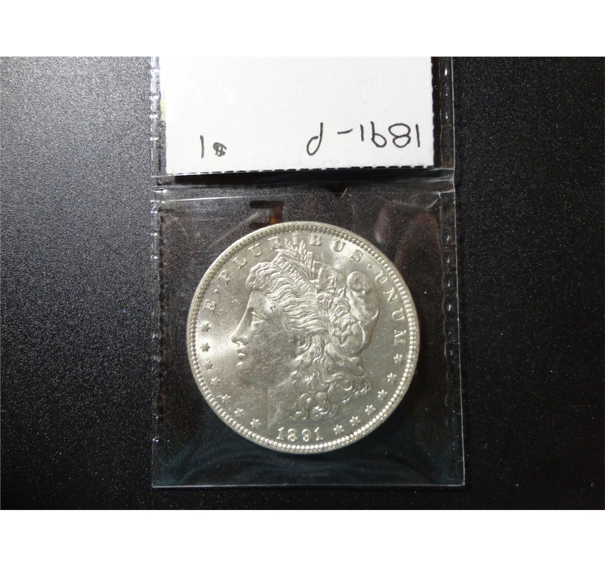 1891-P MORGAN SILVER DOLLAR, MS-64
