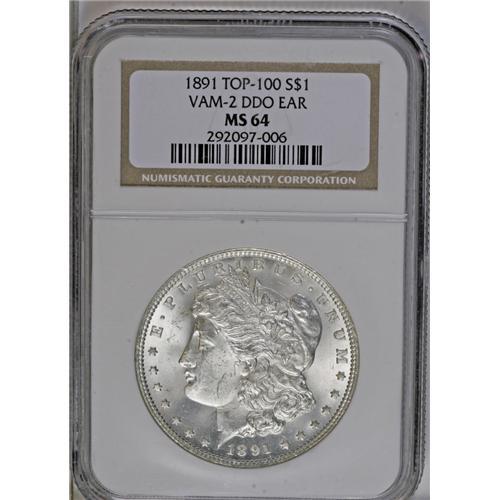 1891 S$1 --DDO Ear--MS64 NGC. VAM-2. A Top 100 Variety.