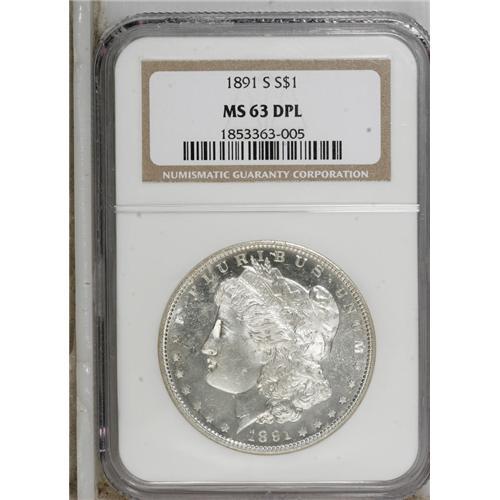 1891-S $1 MS63 Deep Mirror Prooflike NGC. NGC Cens