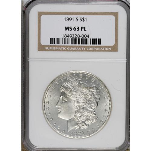 1891-S $1 MS63 Prooflike NGC. NGC Census: (186/232