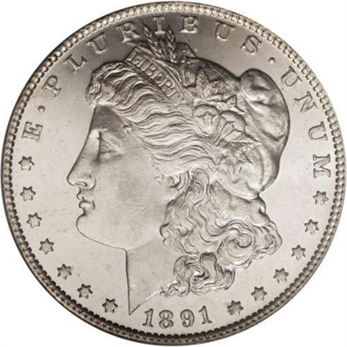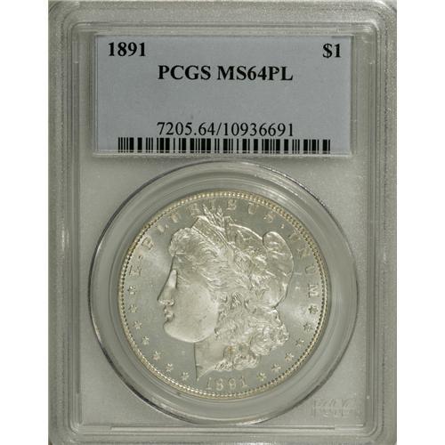 <B>1891 S$1 MS64 Prooflike PCGS.</B></I> This brilliant near-Gem has flashy fields and a well preserved reverse. The 1891 is a better Philadelphia Mint issue, and is seldom found Prooflike. In addition, the devices exhibit moderate frost. Population: 16 in 64 Prooflike, 0 finer (12/06).<BR><BR><b>Shipping:</b> Coins & Currency (<a target="_blank" href="http://www.heritageauctions.com/common/shipping.php">view shipping information</a>)