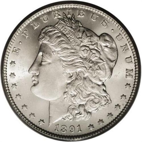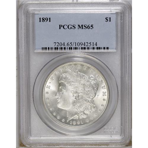 <B>1891 S$1 MS65 PCGS.</B></I> This frosty Gem has a hint of creamy haze in the obverse fields but is otherwise untoned. The strike is significantly above-average, and the overall eye appeal is pleasing. Minor ticks and grazes that appear on each side are individually inoffensive, yet together they preclude a higher grade. Population: 75 in 65, 3 finer (12/06).<BR><BR><b>Shipping:</b> Coin/Currency (<a target="_blank" href="http://www.heritageauctions.com/common/shipping.php">view shipping information</a>)