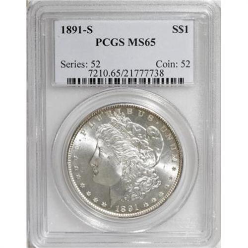 <B>1891-S $1 MS65 PCGS.</B></I> This highly appealing S-mint Gem displays dazzling luster residing on well preserved surfaces, and an exacting strike brings out strong detail on the design elements. The only toning is light and occurs along portions of the obverse margins.<BR><I>From The Silver Spur Collection of Morgan Dollars.</B></I><BR><BR><B>Coin Engraver:</B> George T. Morgan<BR><BR><b>Shipping:</b> Coins & Currency (<a target="_blank" href="http://www.heritageauctions.com/common/shipping.php">view shipping information</a>)