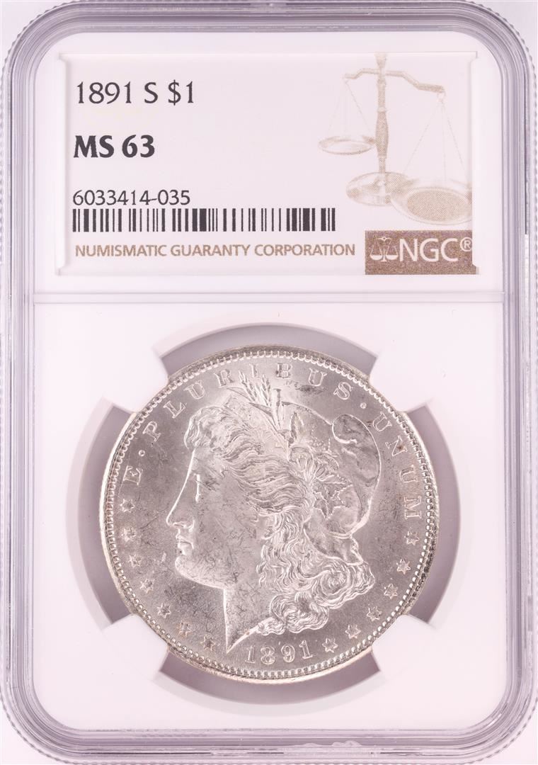 One 1891-S $1 Morgan Silver Dollar Coin NGC MS63. NGC Certified.