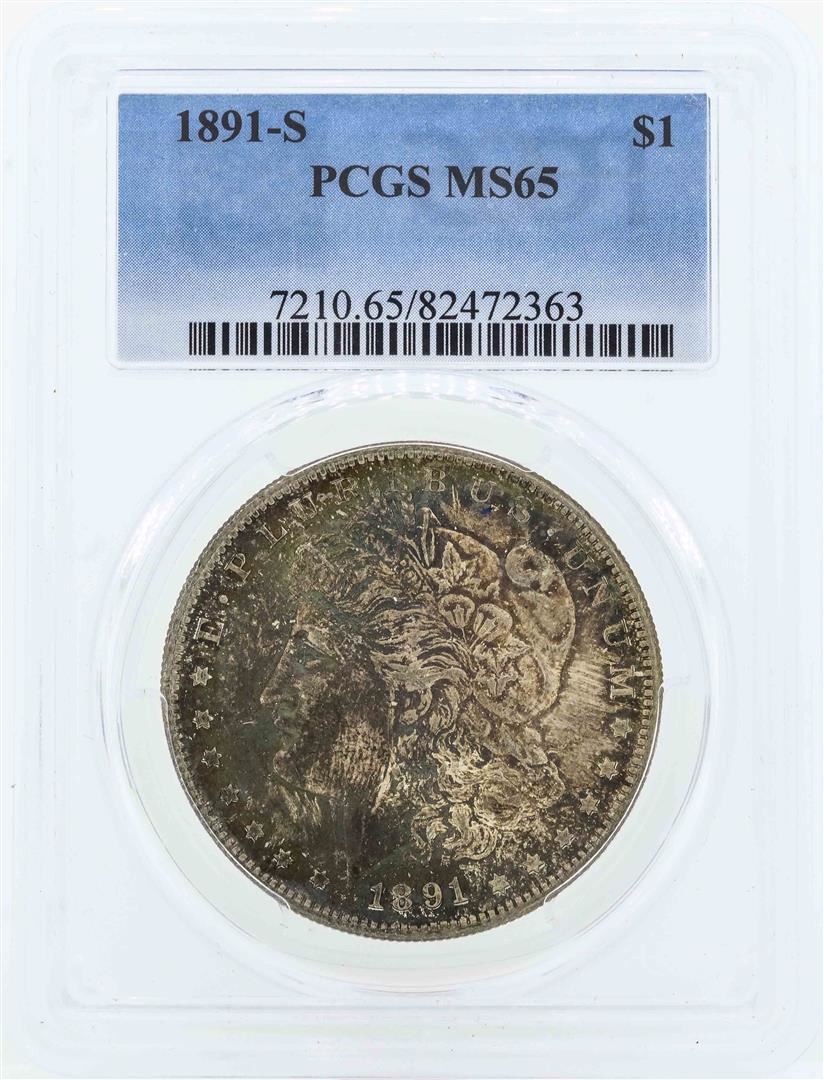 One 1891-S $1 Morgan Silver Dollar Coin PCGS MS65. PCGS Certified.