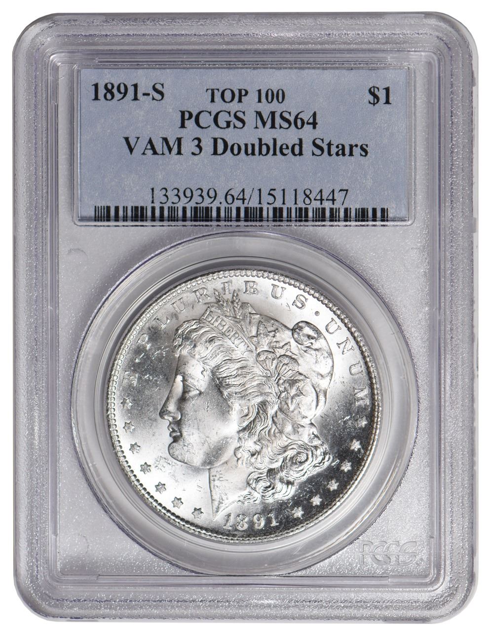 One 1891-S $1 Morgan Silver Dollar Double STAR PCGS MS64 VAM 3.