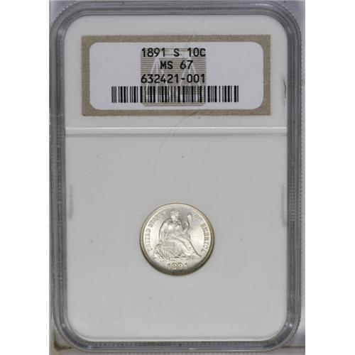 1891-S 10C MS67 NGC. A frosty, well struck Gem that is