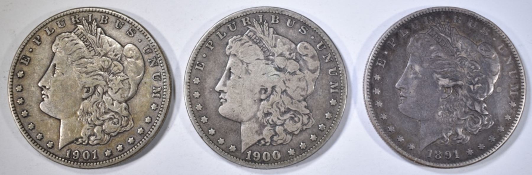 1891-S, 1900-O & 1901-O CIRC MORGAN DOLLARS
