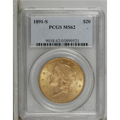 1891-S $20 MS62 PCGS. Sharply struck with alluring gre