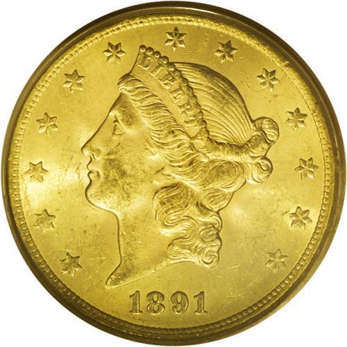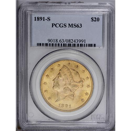 1891-S $20 MS63 PCGS. Elusive any finer, this richly f