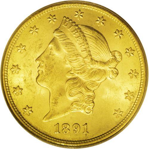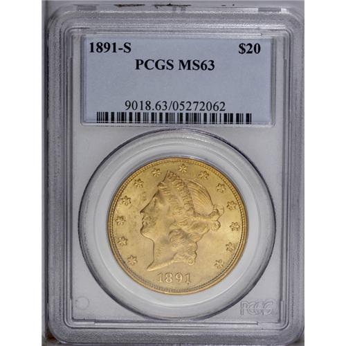 1891-S $20 MS63 PCGS. This is an attractive, fully lus