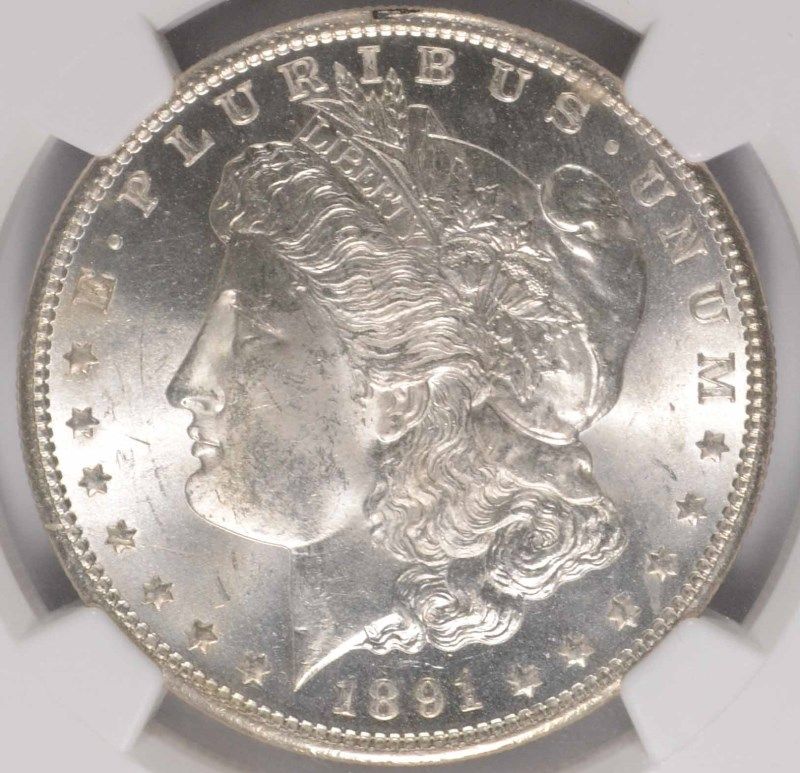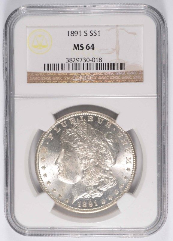 1891-S MORGAN SILVER DOLLAR, NGC MS-64 BLAST WHITE!