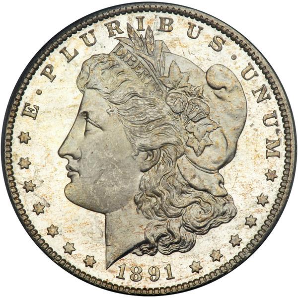 1891-S Morgan Dollar. PCGS graded MS-64 Deep Mirror Prooflike PQ CAC Approved. Well struck with full mirror fields and a Premium Quality coin for the grade. Only rarely will you see a '91-S with this amount of shimmering mirror depth in the fields. Lovely contrast from the frosty devices! Pop 30; 4 in 65 DMPL (PCGS # 97211) .