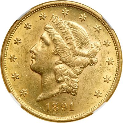 1891-S $20. NGC graded AU Details Obverse Improperly cleaned.