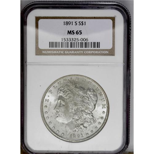 1891-S S$1 MS65 NGC. Essentially untoned with central 1891-S[img border='0' src='http://www.heritage