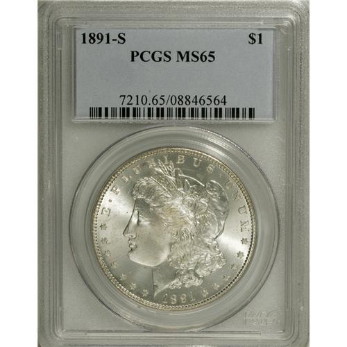 1891-S S$1 MS65 PCGS. A flashy Gem with a semi-proofli