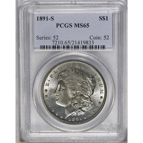 1891-S S$1 MS65 PCGS. Satiny and well struck, this Gem