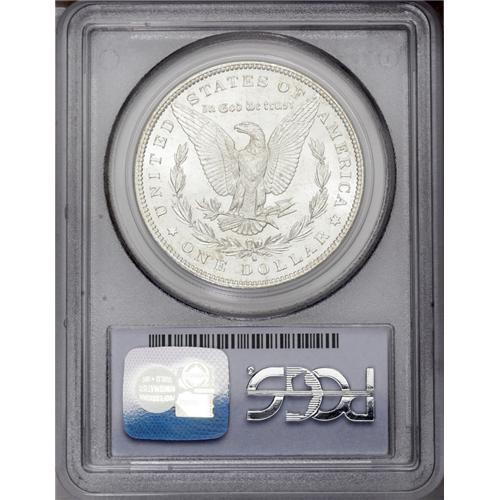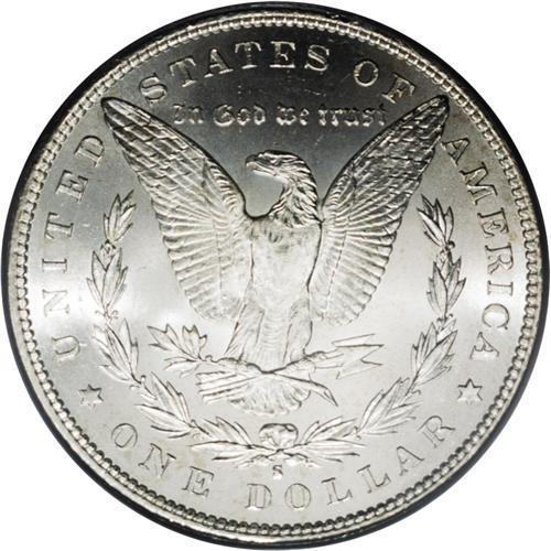 <B>1891-S<img border='0' src='http://www.heritagecoins.com/images/star.gif' width=10 height=10>$1> MS66 PCGS.</B></I> A remarkable Premium Gem with fully prooflike obverse surfaces and exceptional satiny luster on the reverse. Other than the faintest gold toning, both sides are fully brilliant with bright silver surfaces. A luster graze crosses the eagle's breast feathers, but every other detail is fully evident. Population: 46 in 66, 7 finer (1/06).<BR><I>From The Michael Casper Collection, Part Three.</B></I>